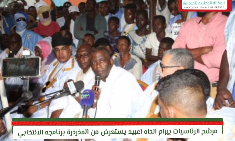 وكان المترشح بيرام الداه اعبيد قد ترأس مساء الأربعاء في مقطع لحجار بولاية لبراكنه، سهرة انتخابية استعرض فيها الخطوط العريضة لبرنامجه الانتخابي