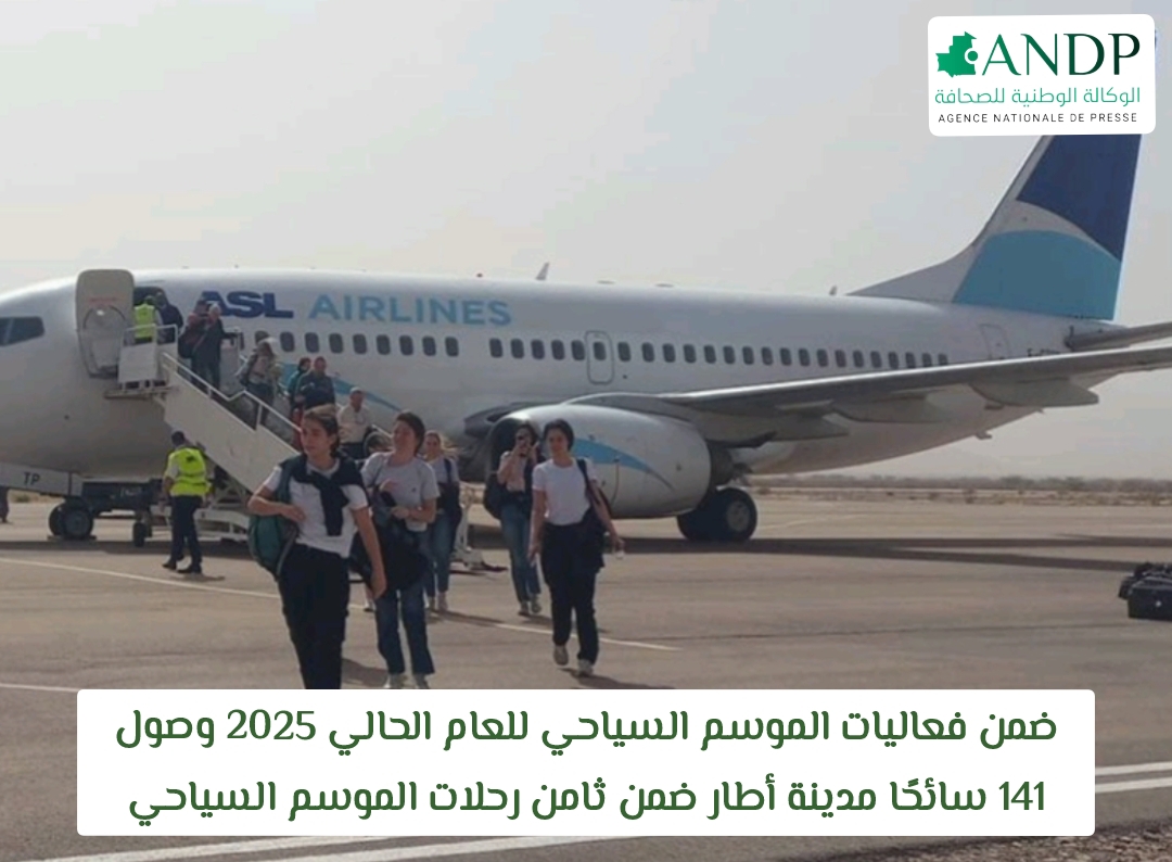 وصلت مساء اليوم السبت إلى مطار مدينة أطار الدولي الرحلة السياحية الثامنة قادمة من فرنسا، وعلى متنها 141 سائحا، وذلك في إطار الرحلات المبرمجة ضمن الموسم السياحي للعام الحالي 2025.