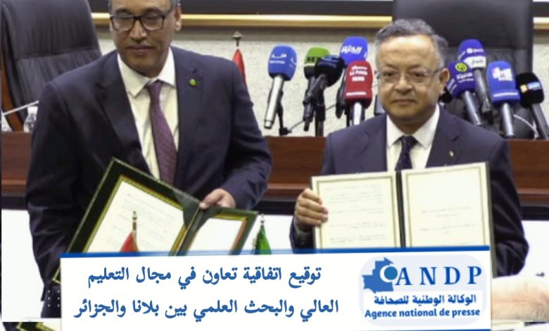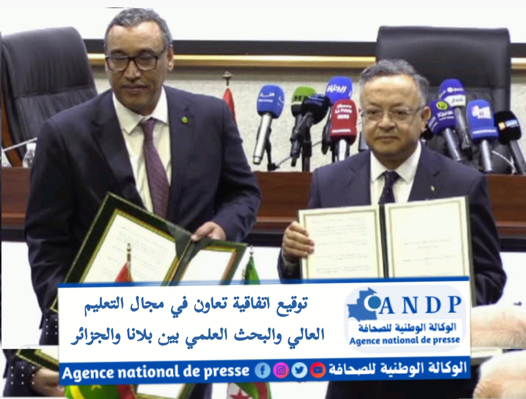 وقع وزير التعليم العالي يعقوب ولد أمين صحبة نظيره الجزائري كمال بداري، اليوم بالعاصمة الجزائر، على اتفاقية البرنامج التنفيذي للتعاون المشترك 2025-2027 في قطاع التعليم العالي والبحث العلمي.