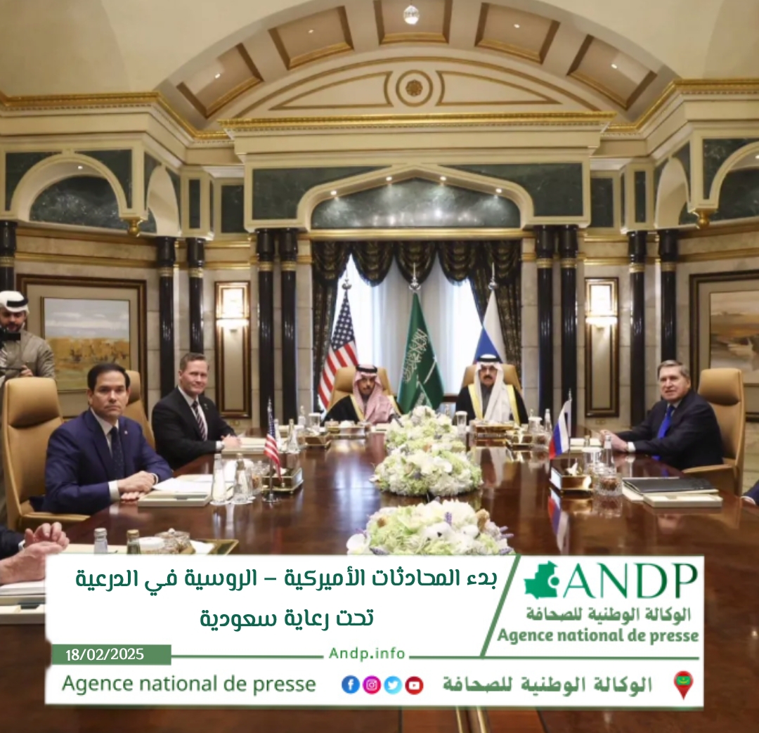 وأظهرت لقطات تلفزيونية وزير الخارجية السعودي الأمير فيصل بن فرحان ووزير الدولة مساعد العيبان يتوسطان طاولة يجلس حولها من الجانب الأميركي وزير الخارجية ماركو روبيو ومستشار الأمن القومي مايك والتز والمبعوث الخاص لترمب إلى الشرق الأوسط ستيف ويتكوف، ومن الجانب الروسي وزير الخارجية سيرغي لافروف، والمستشار الدبلوماسي للكرملين يوري أوشاكوف.