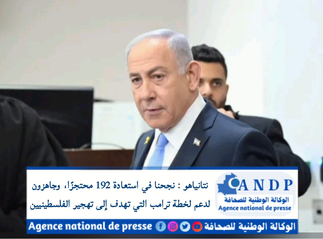 نتانياهو : نجحنا في استعادة 192 محتجزًا، وجاهزون لدعم لخطة ترامب التي تهدف إلى تهجير الفلسطينيين