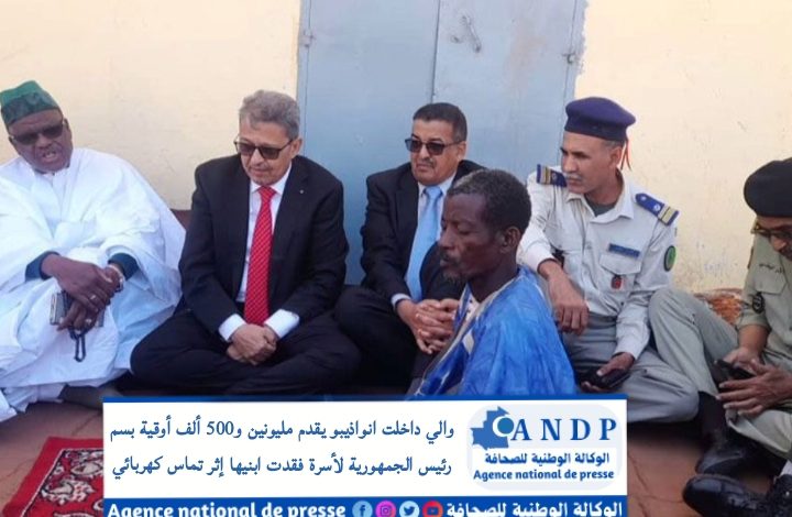 والي داخلت انواذيبو يقدم مليونين و500 ألف أوقية بسم رئيس الجمهورية لأسرة فقدت ابنيها إثر تماس كهربائي