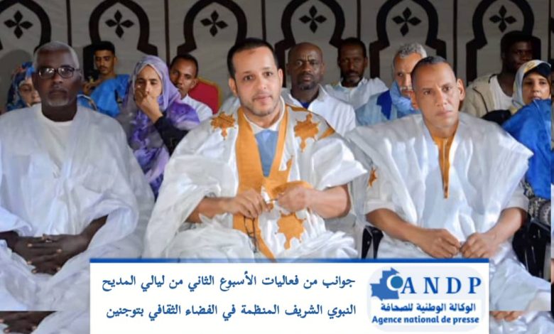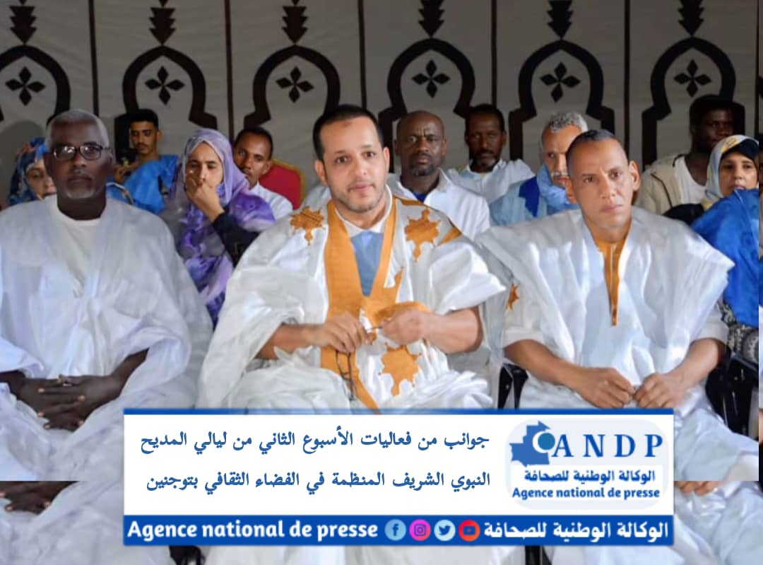 إحتضن المركز الثقافي في توجنين قبل قليل فعاليات السهرة المديحية السادسة بحضور عمدة بلدية توجنين السيد احمد سالم ولد الفيلالي وعدد من عمال البلدية بالإضافة إلى جمع غفير من ساكنة المقاطعة