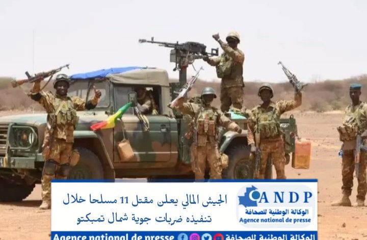 أعلن الجيش المالي مقتل 11 مسلحا وإصابة آخرين وتدمير 3 سيارات، خلال ضربات جوية نفذها مساء الأحد عند نقطة عبور في “قطاع لكميزة على بعد 109 كيلومترات شمال غرب ليره في ولاية تومبكتو”.