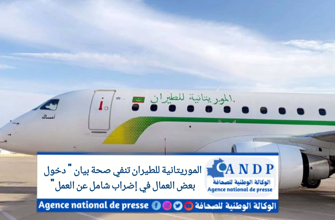 أفادت مصلحة الاتصال والعلاقات بالشركة الموريتانية للطيران أن البيان المنشور مؤخرًا على صحيفة “تقدمي” الإلكترونية، والمنسوب إلى عمال الشركة، هو بيان “مزيّف ولا يعبر بأي شكل عن آراء أو مواقف العمال”.
