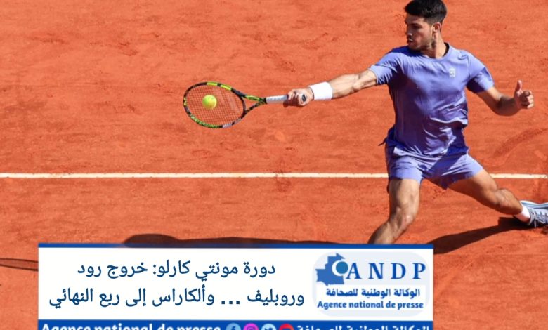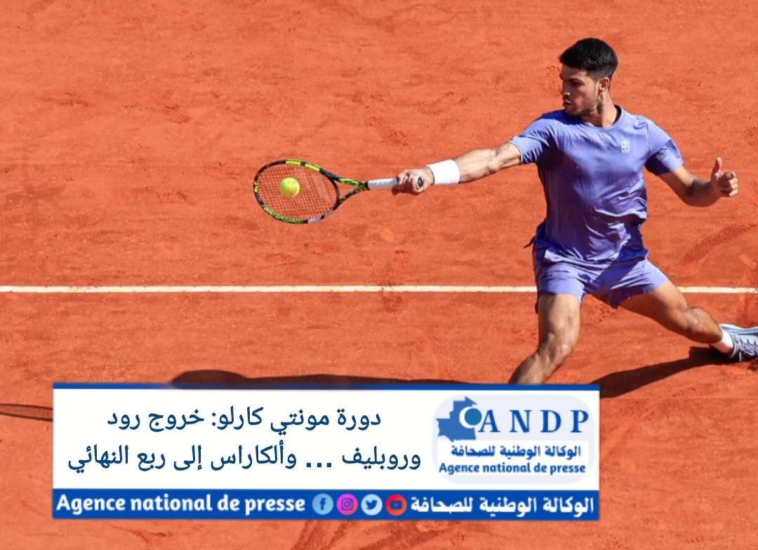بلغ الإسباني كارلوس ألكاراس، المصنف ثانياً، الدور ربع النهائي لدورة مونتي كارلو لماسترز الألف نقطة في كرة المضرب، التي تُطلق موسم الملاعب الترابية المفضّلة لديه، فيما ودّع النرويجي كاسبر رود الرابع، والبريطاني جاك درايبر الخامس، والروسي أندري روبليف السابع، من الدور الثالث.