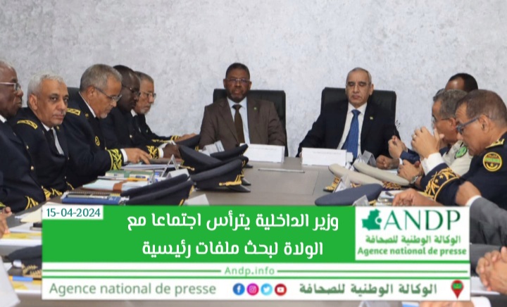 ترأس وزير الداخلية محمد أحمد ولد محمد الأمين، اليوم الثلاثاء اجتماعا مع الولاة حضره أيضا الوزير المنتدب المكلف باللامركزية والتنمية المحلية يعقوب ولد سالم فال.