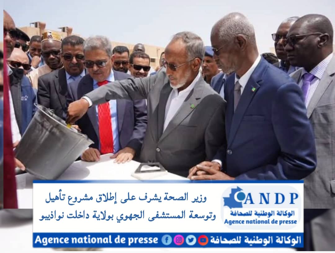 أشرف وزير الصحة، السيد عبد الله سيدي محمد وديه، صباح اليوم السبت في مدينة نواذيبو، على انطلاق مشروع إعادة تأهيل وتوسعة وتجهيز المستشفى الجهوي، بحضور وزير الإسكان والعمران والاستصلاح الترابي، ووالي داخلة نواذيبو، السيد ماحي حامد.