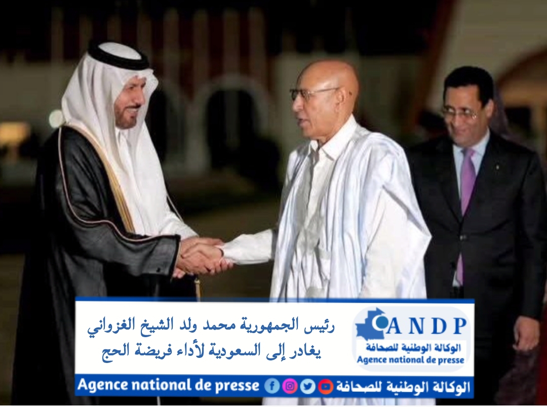 غادر رئيس الجمهورية محمد ولد الشيخ الغزواني، نواكشوط فجر اليوم السبت متوجها إلى المدينة المنورة، ومكة المكرمة بالمملكة العربية السعودية، لأداء فريضة الحج.