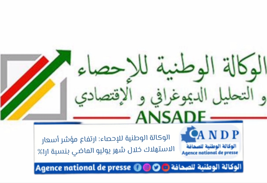 أعلنت الوكالة الوطنية للإحصاء والتحليل الديمغرافي والاقتصادي أن مؤشر أسعار الاستهلاك سجل خلال شهر يوليو الماضي ارتفاعا بنسبة 1ر1%، مقارنة بشهر يونيو، بحيث وصلت نسبة التضخم إلى 4ر1% حسب التغير على مستوى الإثني عشر شهرا الأخيرة وإلى 3ر1% حسب الانزلاق السنوي.