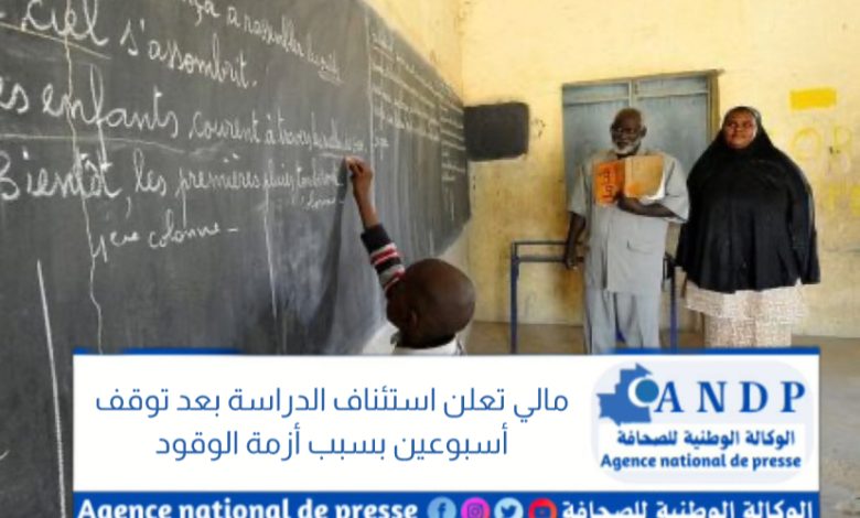 أعلنت وزارة التربية الوطنية في مالي أن الدراسة ستستأنف يوم غد الاثنين على كامل التراب الوطني، بعد توقف دام أسبوعين بسبب أزمة الوقود التي أثّرت على التنقلات وأدت إلى اضطرابات لوجستية في سير العملية التعليمية.