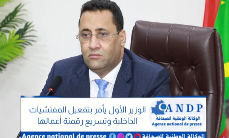 أمر الوزيرُ الأول المختار ولد اجاي الوزراء – ومن في رتبتهم – بتفعيل المفتشيات الداخلية للقطاعات الحكومية، وتمكينها من الأداء الأمثل لدورها في الرقابة على تسيير الشؤون العامة على مستوى كافة إدارات الدولة، منوّها بضرورة تسريع عملية رقمنة أعمالها.