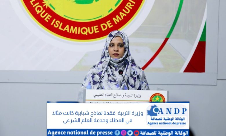 قالت وزيرة التربية وإصلاح النظام التعليمي هدى بنت باباه إن موريتانيا برحيل أساتذة المحظرة الشنقيطية البارحة في حادث سير تفقد نماذج شبابية يحتذى بها، حيث كانوا مثالا في العطاء والتفاني وخدمة العلم الشرعي الأصيل.