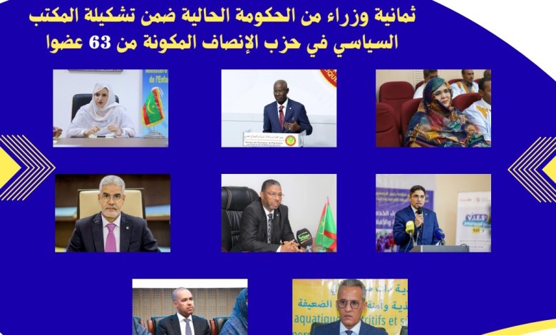 ثمانية وزراء من الحكومة الحالية ضمن تشكيلة المكتب السياسي في حزب الإنصاف المكونة من 63 عضوا