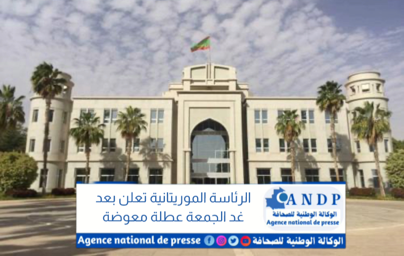 أعلنت الرئاسة الموريتانية اليوم الأربعاء، أن بعد غد الجمعية سيكون عطلة معوضة على كامل التراب الوطني.