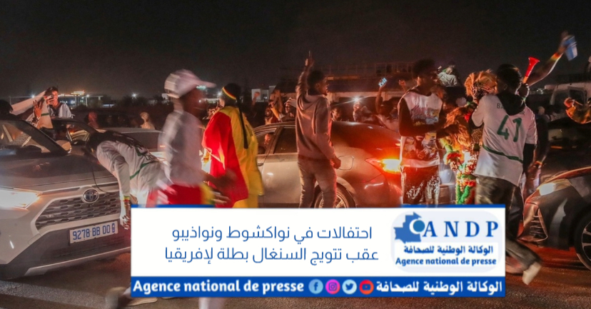 شهدت عدة مدن موريتانية، من بينها العاصمة نواكشوط والعاصمة الاقتصادية نواذيبو، الليلة البارحة، احتفالات شعبية عقب تتويج المنتخب السنغالي بلقب كأس أمم إفريقيا بعد فوزه على المنتخب المغربي بهدف دون مقابل في المباراة النهائية.