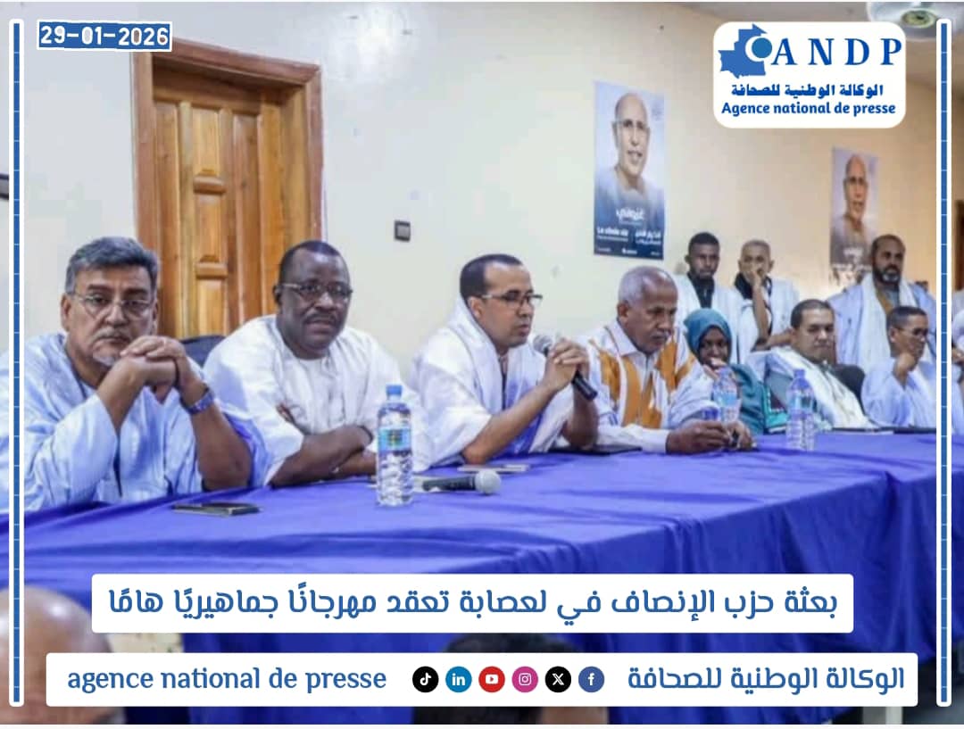 عقدت بعثة حزب الإنصاف على مستوى ولاية لعصابة، مساء اليوم، مهرجانًا جماهيريًا هامًا في مدينة كيفه، برئاسة النائب الرابع لرئيس الحزب محمد محمود ولد عبد الله، وذلك في إطار تعزيز العمل القاعدي وتنفيذ مخرجات المؤتمر الأخير للحزب.