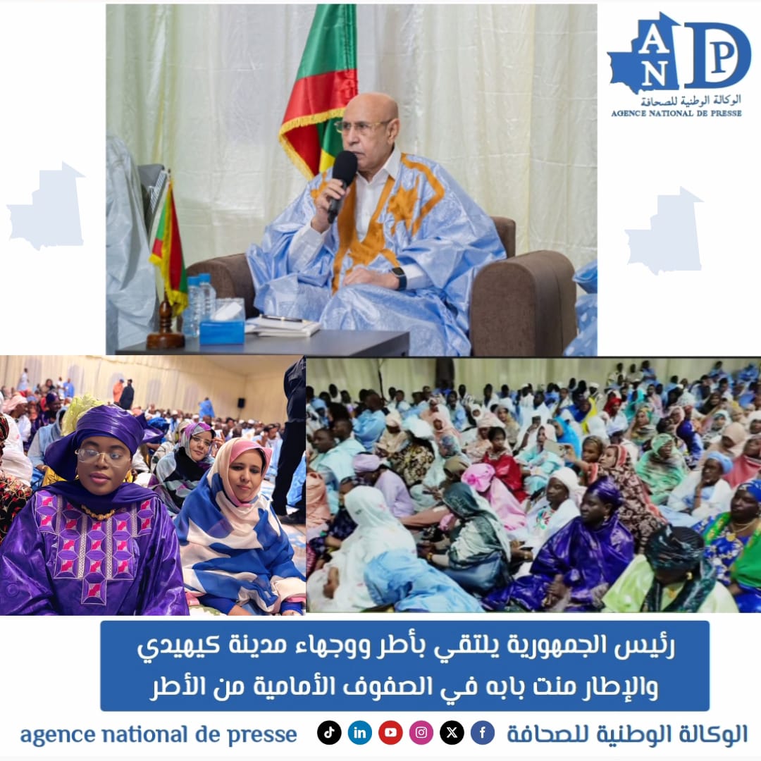 رئيس الجمهورية يلتقي بأطر ووجهاء مدينة كيهيدي والإطار منت بابه في الصفوف الأمامية من الأطر