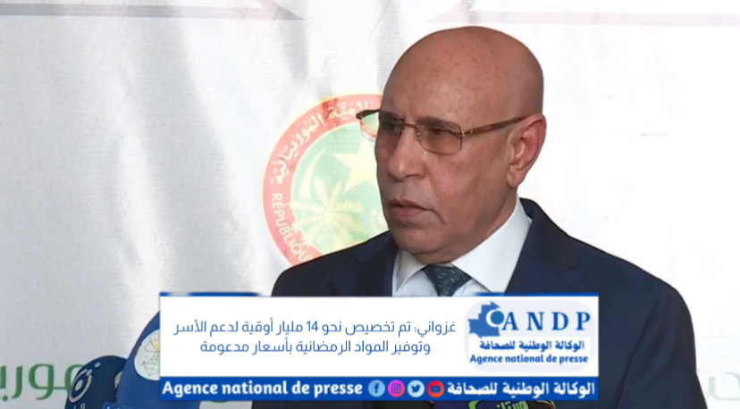 قال رئيس الجمهورية محمد ولد الشيخ الغزواني، أن الدولة خصصت هذا العام حوالي 14 مليار أوقية لتنفيذ برنامج رمضان، يشمل دعما مباشرا لـ 168 ألف أسرة وتوسيع نقاط بيع المواد الأساسية إلى 137 نقطة في نواكشوط، بالإضافة إلى 476 نقطة لبيع الأسماك بأسعار مخفضة على مستوى البلاد.