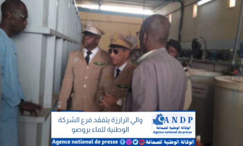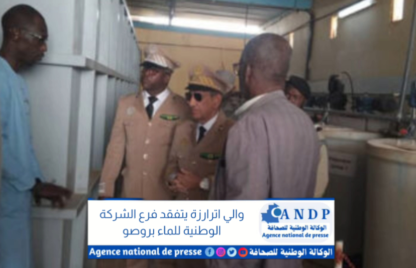 أدى والي اترارزة السيد أحمدن ولد سيد أب، اليوم الجمعة زيارة تفقد واطلاع لفرع الشركة الوطنية للماء في مدينة روصو.
