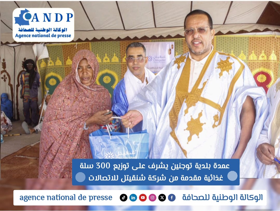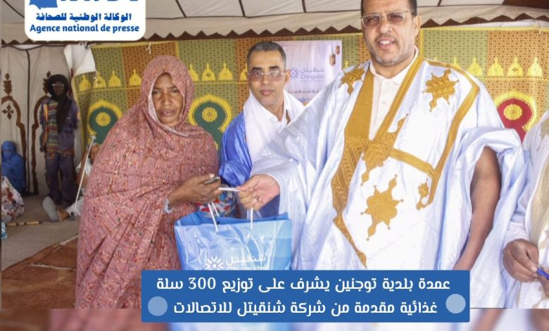 أشرف عمدة بلدية توجنين السيد أحمد سالم ولد الفيلالي، وبحضور حاكم مقاطعة توجنين السيد عبد الله موسى گي، أشرفت السلطات البلدية، صباح اليوم الأحد، على توزيع 300 سلة غذائية بمقر البلدية، مقدمة من طرف شركة شنقيتل للاتصالات