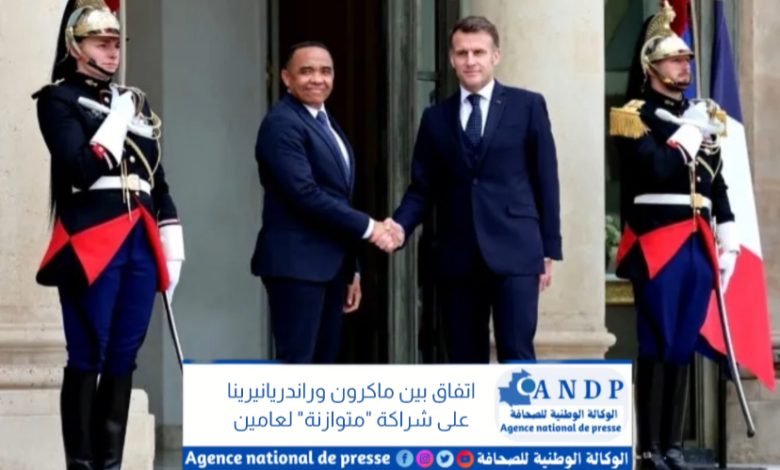 وأوضح البيان أن الشراكة التي اتفق عليها ماكرون وراندريانيرينا خلال غداء عمل تم الثلاثاء في قصر الإليزي، تهدف إلى “تحقيق نتائج ملموسة لصالح شعبي البلدين”.