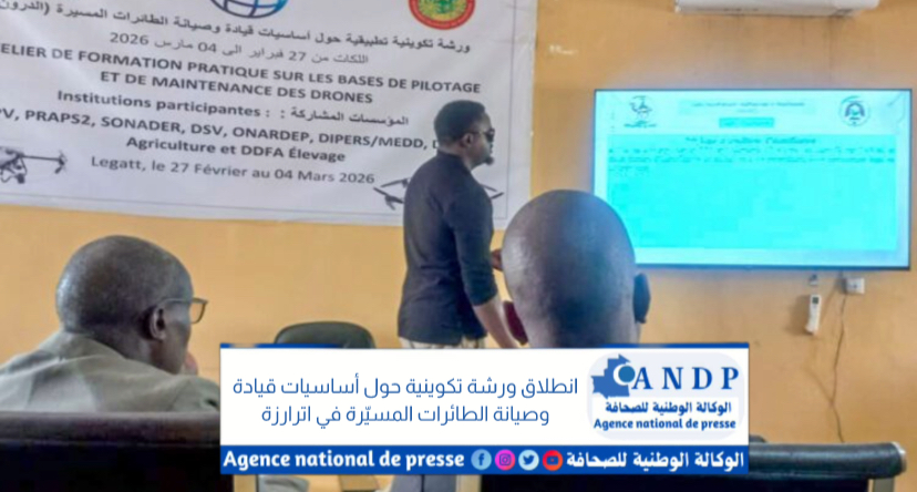 احتضن مركز اللكات للتكوين، بمقاطعة انتيكان في ولاية اترارزة، دورة تدريبية تطبيقية حول أساسيات قيادة وصيانة الطائرات المسيّرة (الدرون)، المستخدمة في مجال حماية النباتات، وذلك لصالح 25 إطارًا يمثلون قطاعات الزراعة والسيادة الغذائية، والتنمية الحيوانية، والبيئة والتنمية المستدامة.