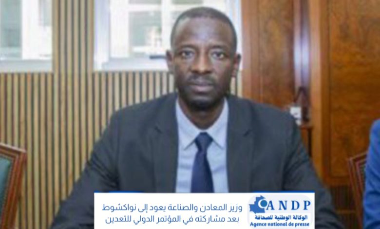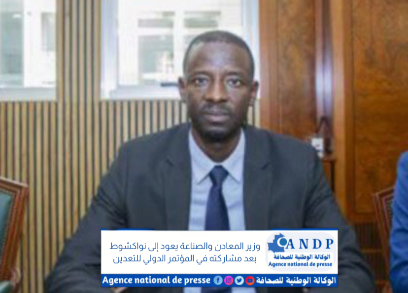 عاد معالي وزير المعادن والصناعة، السيد اتيام التجاني، مساء أمس الجمعة إلى نواكشوط، قادماً من كندا، بعد أن شارك على رأس وفد رفيع من قطاعه في أعمال المؤتمر الدولي للتعدين، المنعقد بمدينة تورونتو خلال الفترة من 1 إلى 4 مارس 2026.