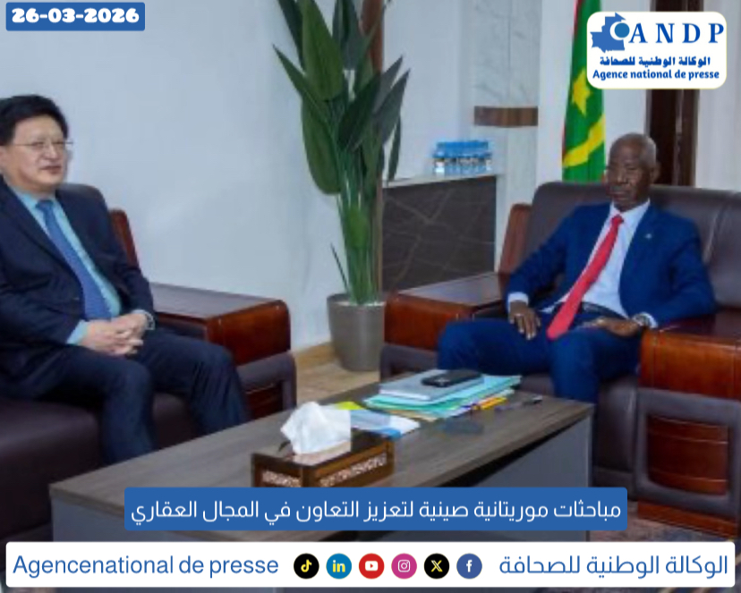أجرى وزير العقارات وأملاك الدولة والإصلاح العقاري، مامودو مامادو انيانغ، اليوم الخميس في نواكشوط، مباحثات مع السفير الصيني المعتمد دلى موريتانيا ، تانغ اتشونغ دونغ، تناولت سبل تعزيز التعاون بين البلدين.